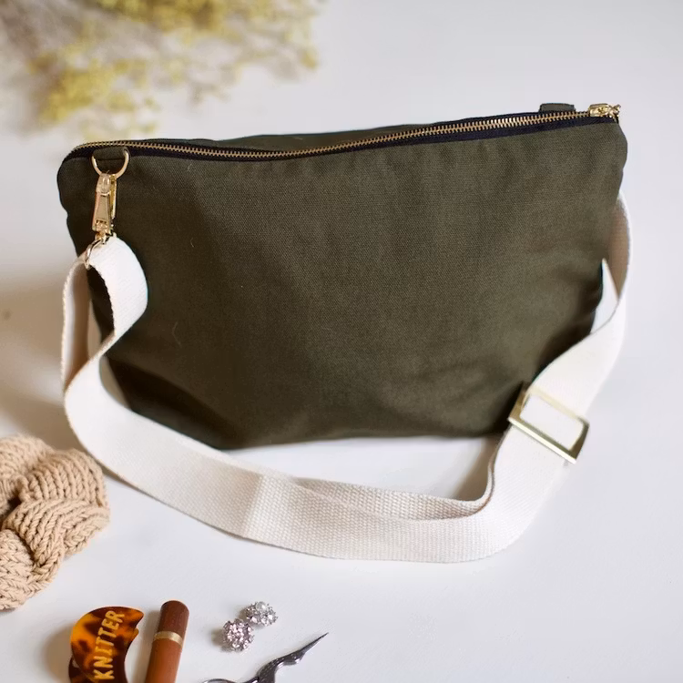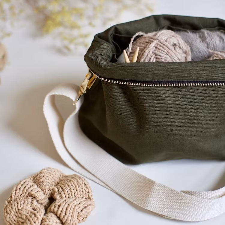 NYHET: Nå lanserer vi en tidløs og praktisk prosjektveske, håndsydd i dobbelt bomullskanvas som gjør den stødig og solid. Den rommer mye, og kommer med praktiske lommer til strikkepinner og annet strikketilbehør. Vi har med oss alt fra mobil og lommebok, til saks, nåler, målebånd og et pinneetui i vår prosjektveske. Den ene lommen har også 3 små hull som du kan tre garn igjennom ved flerfargestrikk, så det ikke vikler seg sammen. Glidelåsen brettes ned når prosjektpungen er i bruk slik at glidelåsen ikke er i veien, samtidig som den holder alt på plass når den er lukket. Det følger også med en justerbar reim i vevd bomull, som er behagelig i bruk. Den kan også tas av om ønskelig. Med prosjektveska er du alltid klar til å få strikket noen masker, uansett hvor du er. Finn din favorittfarge, så har du en kul veske som passer til favorittantrekket ditt til sommeren!